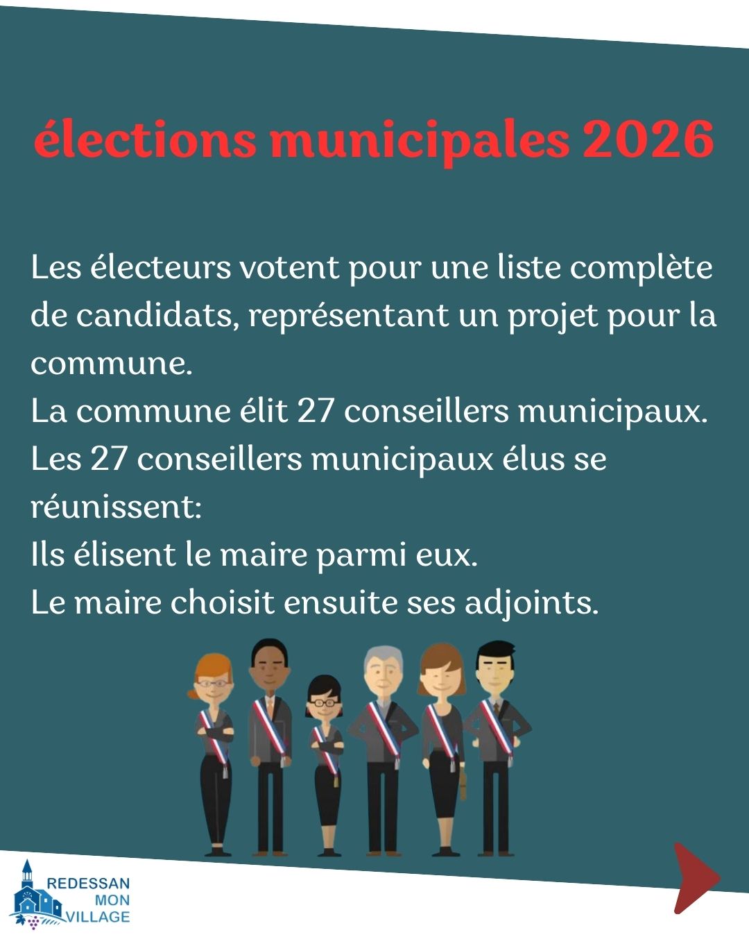 Les 15 et 22 mars 2026 vous allez élire pour 6 ans une équipe municipale pour VOTRE commune REDESSAN ; Et de ce fait des élus communautaires.