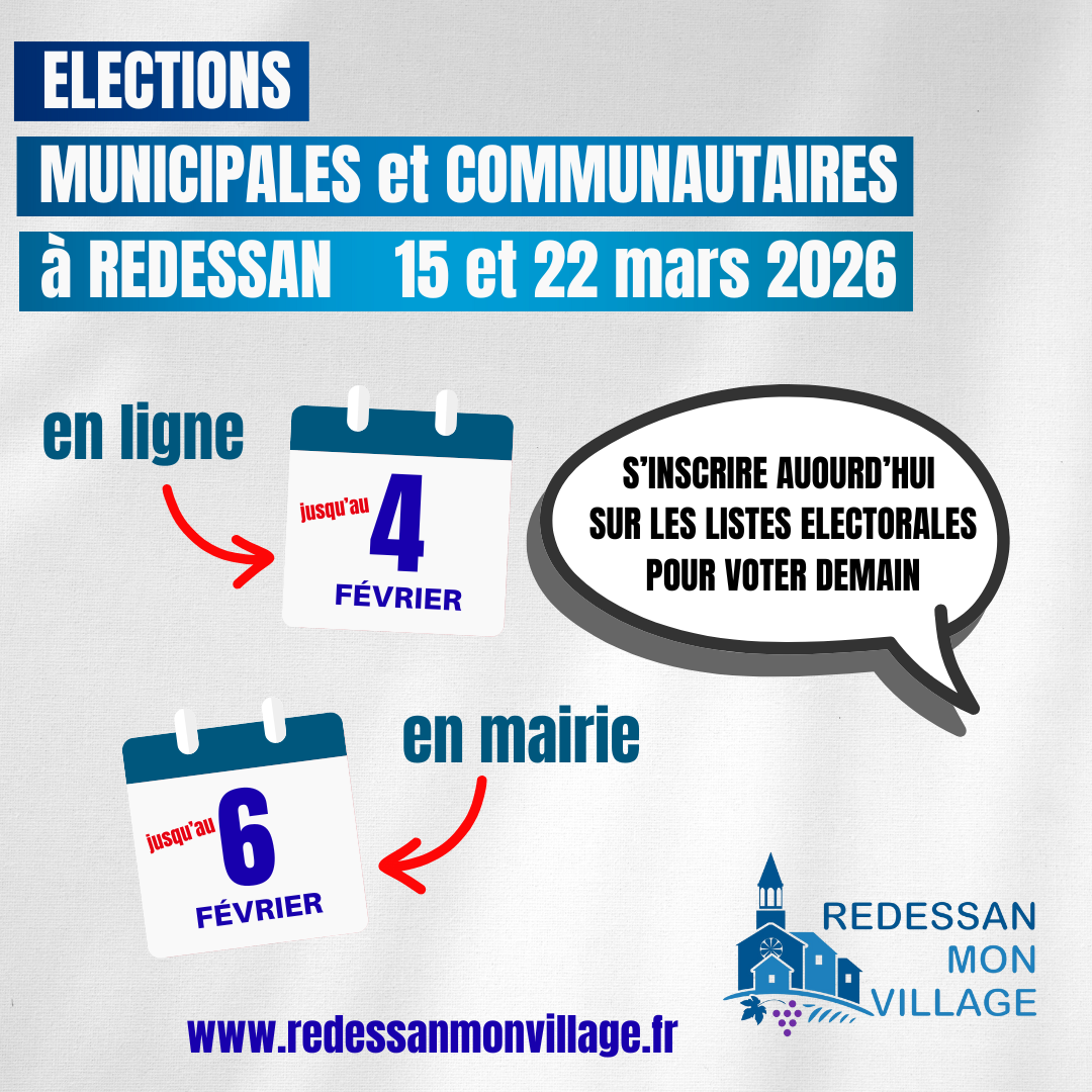 À la mairie de REDESSAN le service élections sera exceptionnellement ouvert au public le vendredi 6 février 2026 de 13h30 à 17h30.